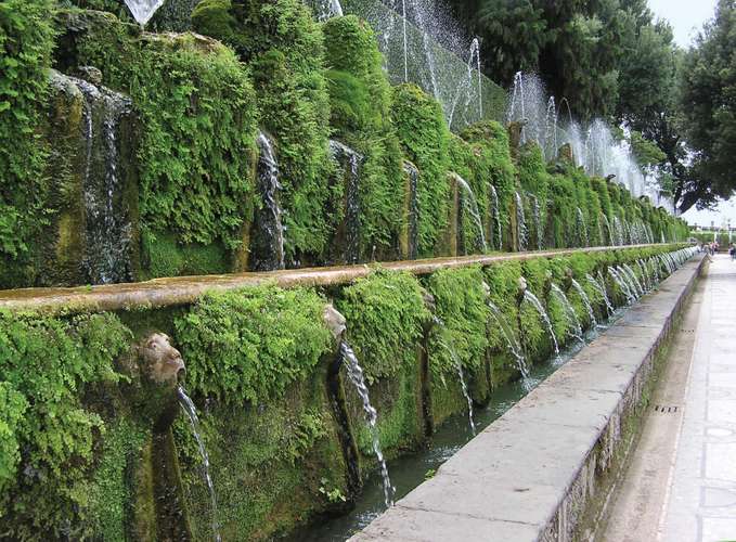 چشمه ها از زمان های بسیار قدیم عنصر مهمی در طراحی باغ ها و فضاهای عمومی بوده اند. نمونه اولیه آن در حوضچه حک شده بابل (حدود ۳۰۰۰ سال قبل از میلاد) یافت شده در طلو ، لاگ باستانی در بین النهرین است. چشمه آشوری کشف شده در تنگه رودخانه کامل شامل حوضه هایی است که در سنگ جامد بریده شده و از پله های جریان به سمت پایین می رود. مجرای کوچک آب را از یک حوضه به حوضه دیگر منتقل می کند ، که پایین ترین آن توسط دو شیر شایع در امداد تزئین شده است.